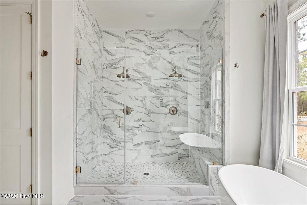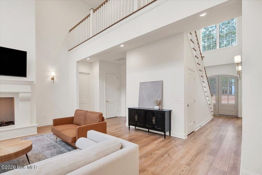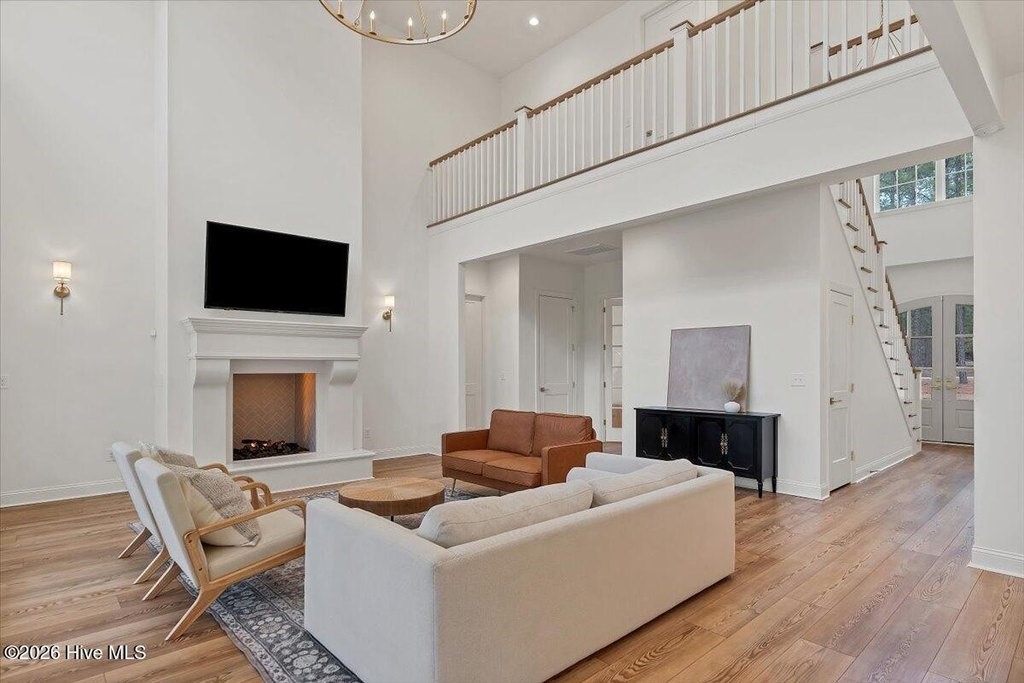 Welcome to 15 Deer Track Road - a stunning custom home completed in October 2023, set on 0.74 acres with real brick and HardiePlank exterior. With 10-foot ceilings downstairs, 9-foot ceilings up, 8-foot doors throughout, and an abundance of natural light, every detail has been thoughtfully considered. Double entry doors open to a gracious foyer with a glass-door home office and a coat closet. The open living area centers around a sleek vapor fireplace - beautiful and kid-safe. The chef's kitchen features quartz countertops, marble tile backsplash, gas range, farmhouse sink, paneled refrigerator, and a large island with storage. A walk-in pantry and sunny breakfast nook complete the space. A playroom (or second office, craft room, etc) with glass French doors, a tiled powder room, and storage closet make the first floor both functional and beautiful! The mudroom offers custom inset locker storage and a laundry closet with shelving; washer and dryer convey. The 3-car garage is EV-ready. The main level primary suite features 2 separate closets and a spa-like ensuite with a two-head shower, soaking tub, double vanity, and linen closet. Step outside to a back porch with patio furniture included, overlooking a spacious, open backyard with room to grow. Upstairs, three bedrooms each have carpet, fans, and double-door closets. A full tiled bath and hall linen storage complete the level. Custom-built with heart. Finished with intention. Ready for its next chapter.
